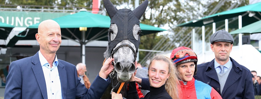 Erwähnenswert ist außerdem der Sieg von Dilpak in der America Unlimited Kentucky Trophy, einem Ausgleich III über 1700 Meter, der unter dem Banner von Neu-Sponsor America Unlimited in Kooperation mit Kentucky gelaufen wurde. Der Wallach holte für Bult-Trainerin Janina Reese beim siebten Start in 2023 den vierten Sieg und avancierte mit diesem neuerlichen Erfolg zu einem echten Hannover-Spezialisten und heimlichen Star, denn alle vier Treffer gelangen ihm auf der Neuen Bult. „Dilpak liebt seine Heimatbahn. Wir werden daher sehen, ob er dieses Jahr überhaupt noch einmal an den Ablauf kommt oder in die Winterpause geht“, so Janina Reese. Einen weiteren Heimsieg holte Vicente für Christian Sprengel, der sich den Sieg im Ausgleich I schnappte.